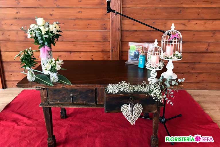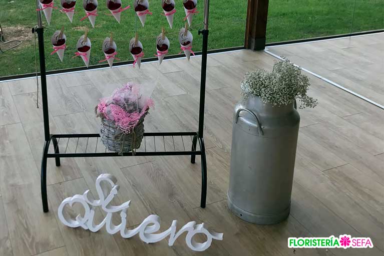 En la ceremonia no faltó detalle con los diferentes adornos y composiciones florales que creaban el ambiente ideal para recibir los votos de nuestra pareja. El ramo de boda en perfecta consonancia con el resto de la decoración floral cumplió con la expectativas depositadas en nosotros y eso hace que nos sintamos orgullosos de nuestro trabajo.