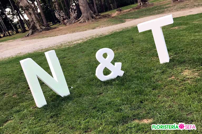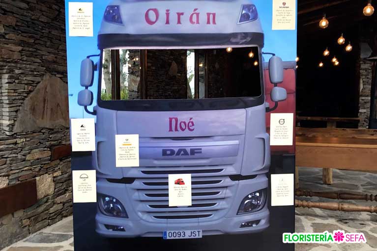 En los exteriores tampoco faltaron los complementos como las letras gigantes con las iniciales de nuestros recién casados, carteles con frases motivadores y un photocall original en forma de camión en honor al oficio del novio que además de crear momentos cómicos y divertidos entre los invitados también sirvió como seating.